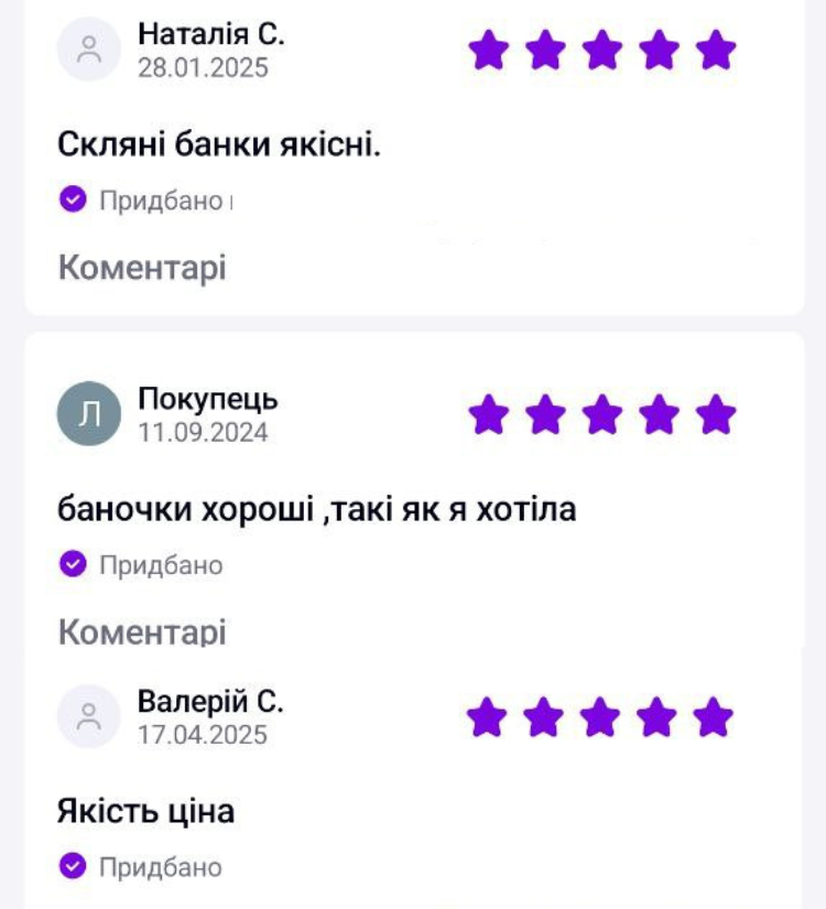 Наші скляні банки виготовлені із харчового високоборосилікатного скла, вони не токсичні і не містять свинцю.