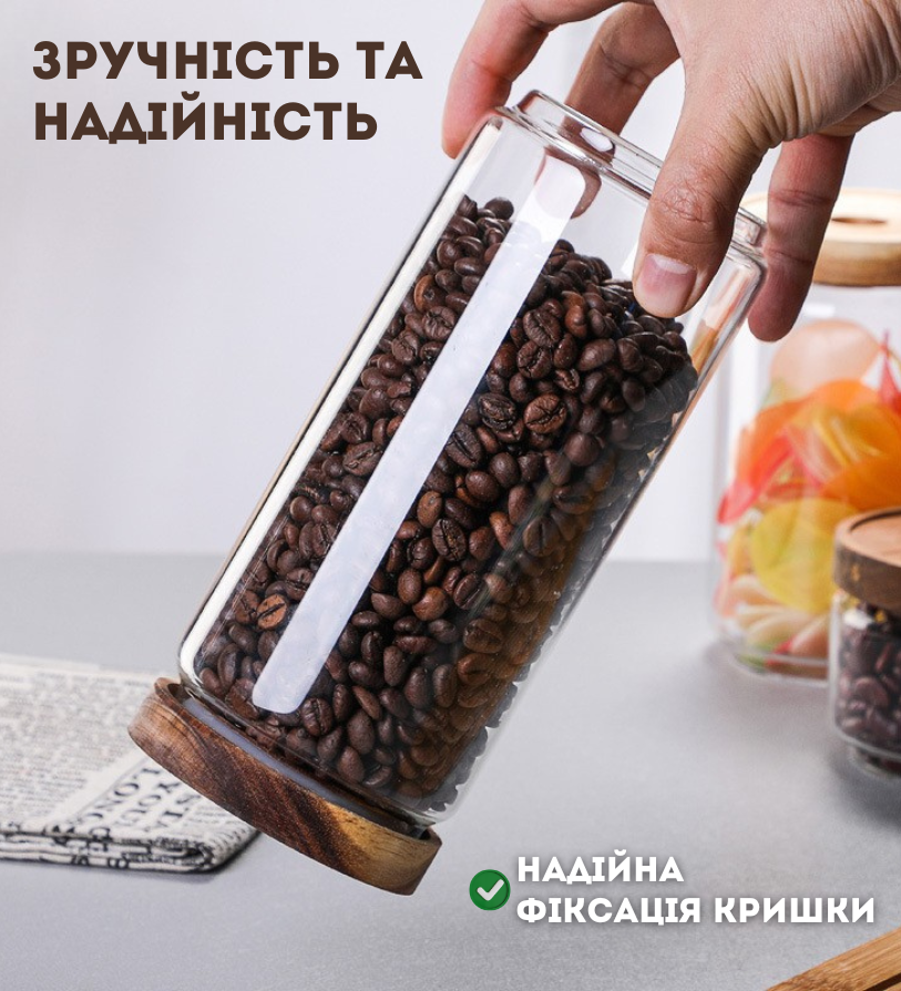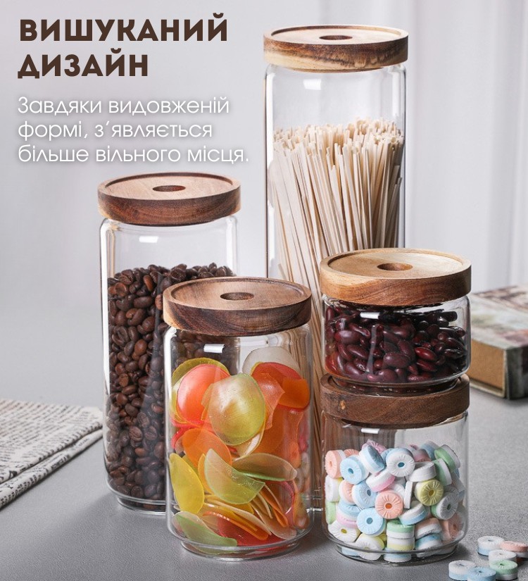 Також завдяки дизайну, банка заощаджує місце на ваших полицях.
